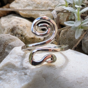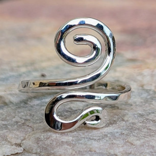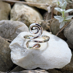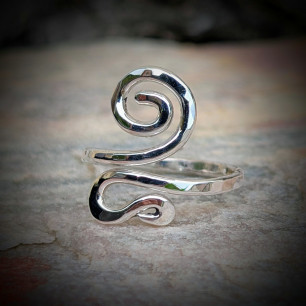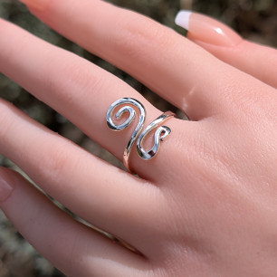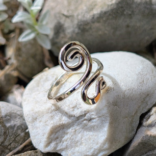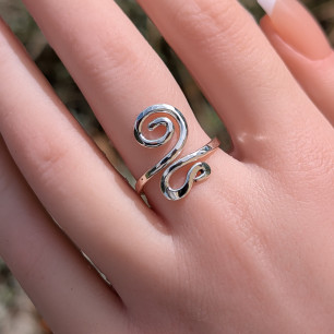 Cette bague "Danse des Volutes" en argent martelée arbore un motif en volute élégante, inspiré des formes naturelles et des symboles célestes. Chaque courbe est soigneusement façonnée pour offrir un bijou au design à la fois moderne et poétique. L’argent est travaillé et martelé à la main, créant des reflets lumineux uniques et un toucher subtil.