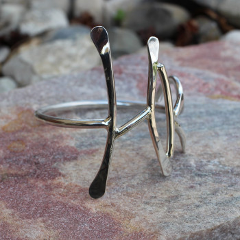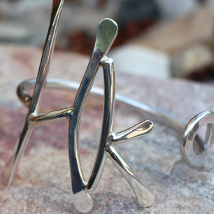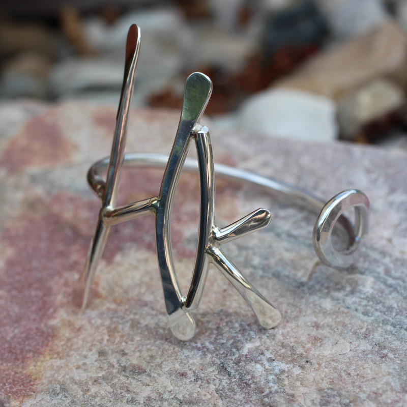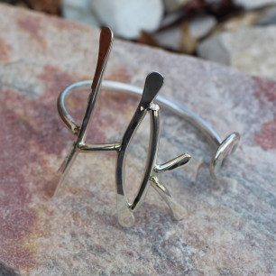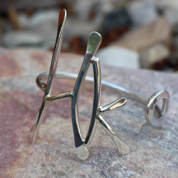 Le Bracelet en argent HK est le fruit d'une commande particulière. HK sont les initiales de la personne concernée. Le métal argent est forgé à chaud par le marteau.