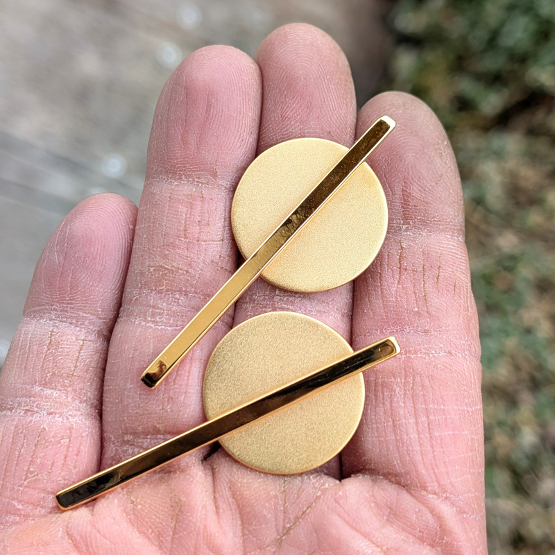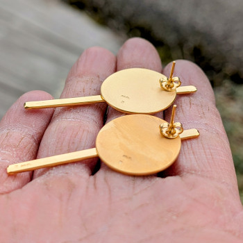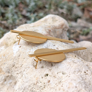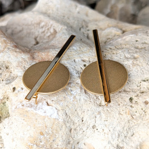 Boucles d'oreille pendantes Pure Elégance plaqué or jaune. Entièrement conçues dans un Atelier d'Art en France, le bijoutier Ludovic GOUPIL est heureux de vous présenter sa nouvelle création nommée "Pure Elégance". Cette paire de boucles d'oreille reflète une pureté de ligne idéale pour habiller vos tenues de soirées ou vos tenues du quotidien. Les boucles d'oreille sont plaqué or d'une grande qualité 3 microns 750/1000 finition 999/1000 pour une belle longévité. Longueur 6 cm environ. L'aspect mat et brillant sublime le bijou dans un contraste de couleur saisissant et élégant. Le bijou est livré dans un écrin avec un emballage cadeau.